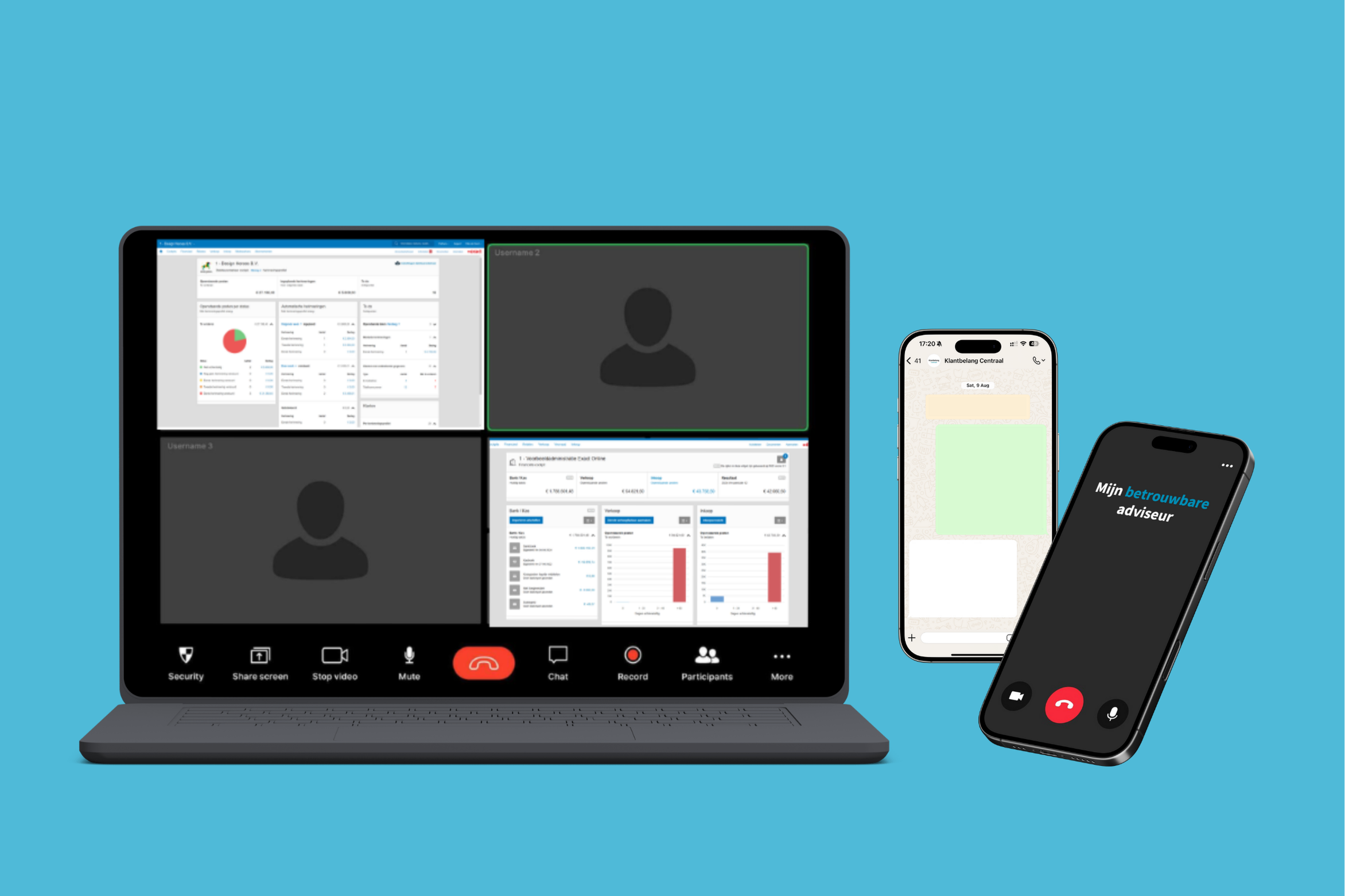 Voor onze klanten zijn wij 24/7 bereikbaar en benaderbaar. Van in-app samenwerken tot communiceren via kanalen als videobellen, WhatsApp, bellen en mailen